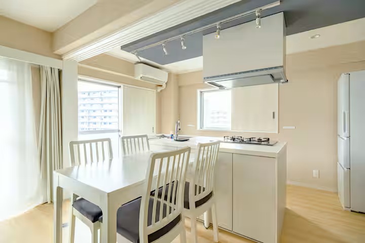 小さいながらもキッチンには、調理器具、食器、カトラリーを完備。簡単な自炊が可能です。さらに、洗剤などの消耗品も揃えておりますので、快適にご滞在いただけます。周辺には飲食店やスーパーも多く、滞在中に困ることはありません。
