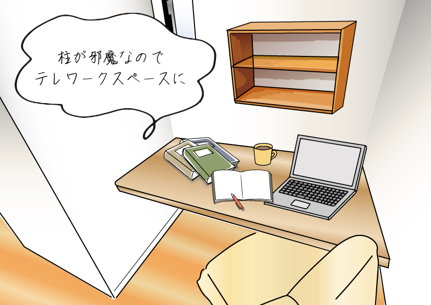 ②柱が邪魔なのでテレワークスペースに